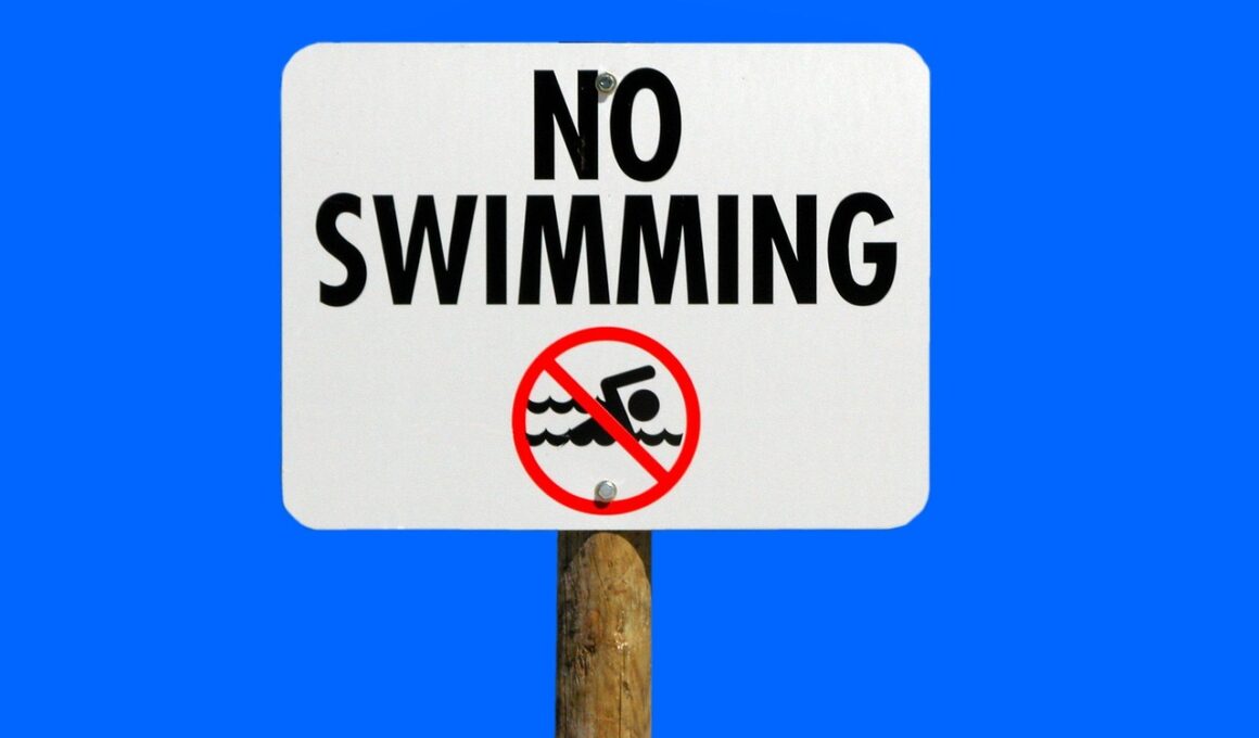 When swimming in natural bodies of water, being aware of local wildlife can be crucial to avoiding dangerous encounters. Many lakes, rivers, and oceans are home to various creatures, some of which can be dangerous to humans. For instance, jellyfish stings, shark encounters, or even the presence of aggressive freshwater fish can turn a fun day into a disaster. Always research the area and learn about the types of wildlife you might encounter. Some regions may have more noteworthy hazards, while others may be relatively safe. Knowing what to expect will prepare you better for unexpected events. For example, if swimming in an area known for jellyfish, inquire about protective measures like wearing a wetsuit. Always heed warnings posted by local authorities regarding wildlife and aquatic life in the swimming area. Additionally, avoid swimming near fishing or boating activities, as this can increase the risk of injury. It is important to respect nature and remain vigilant to ensure both your safety and the wildlife’s safety, enhancing your overall swimming experience.