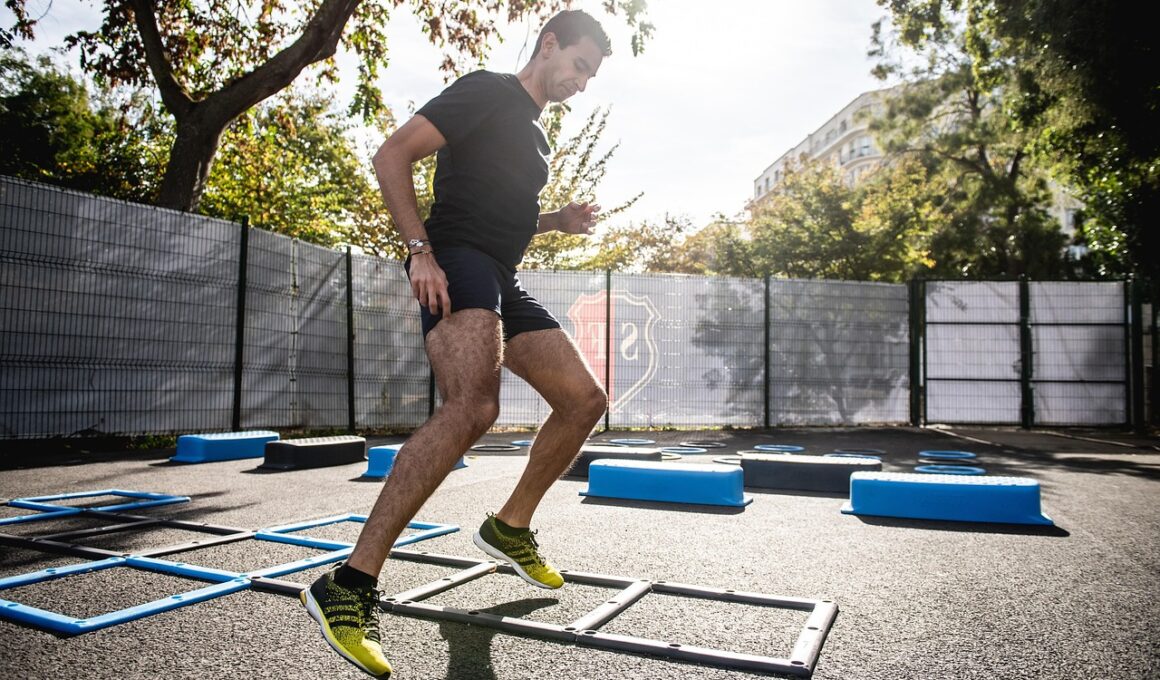 To further advance agility training, incorporate plyometric exercises as they create explosive power. Plyometric drills, such as box jumps, depth jumps, and lateral hops, enhance muscle reaction time. They engender a training response that accelerates strength development, particularly in the fast-twitch muscle fibers primarily responsible for quick, powerful movements. Another engaging method includes agility ladder workouts, which can be structured into timed intervals. Start with basic movements like high knees and progress to more advanced techniques like in-and-out hops. When using an agility ladder, maintain a focus on form, ensuring sharp foot placement for maximal benefit. Additionally, for a variety of stimuli, practice drills with resistance bands. These are a simple yet effective component to incorporate into your routine, allowing you to challenge your speed during workouts while reinforcing your balance and lateral control. As you conduct the workouts, take time to measure your progress periodically. Track the times taken for specific distances, repetitions completed, and variance in speed during drills. Recording these metrics helps maintain motivation and provides insight into your improving agility.